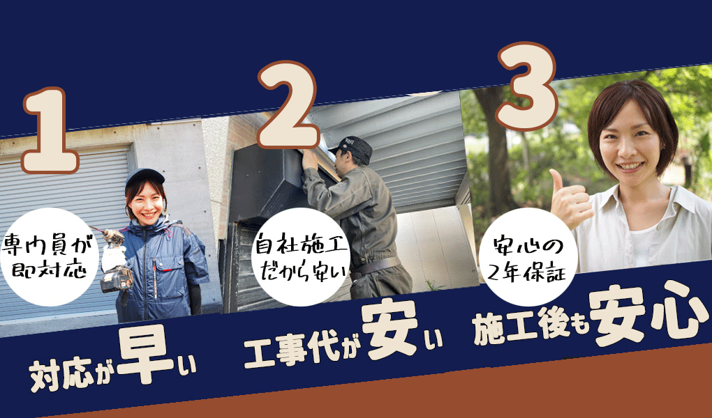 また、シャッターが重くて開けづらい、音が鳴る等の対応も施工後1年間無料にて対応しております。